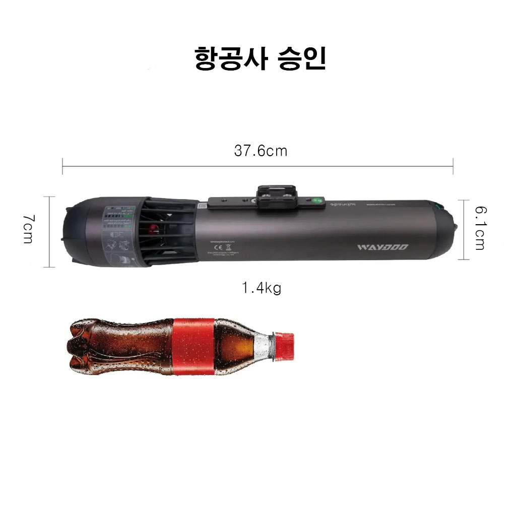 길이 38cm, 폭 6cm에 불과한 서브나도(Subnado)는 스타일리시하고 슬림한 컴팩트 디자인으로, 휴대가 간편하며 제한된 여행용 수하물 공간을 더 효율적으로 사용할 수 있습니다. 무게는 단 1.4kg로, 일반 수중 스쿠터보다 50% 가볍습니다. 여행 시 가벼움은 곧 부담 없는 이동을 의미합니다. 또한 내장된 98Wh 배터리는 항공사 승인 배터리로, 기내 수하물에 그대로 넣어 전 세계 어디든 자유롭게 여행할 수 있습니다. * 리튬 이온 배터리는 와트시(Watt-hour) 용량이 100Wh를 초과하지 않아야 합니다. (미 연방항공청 기준)