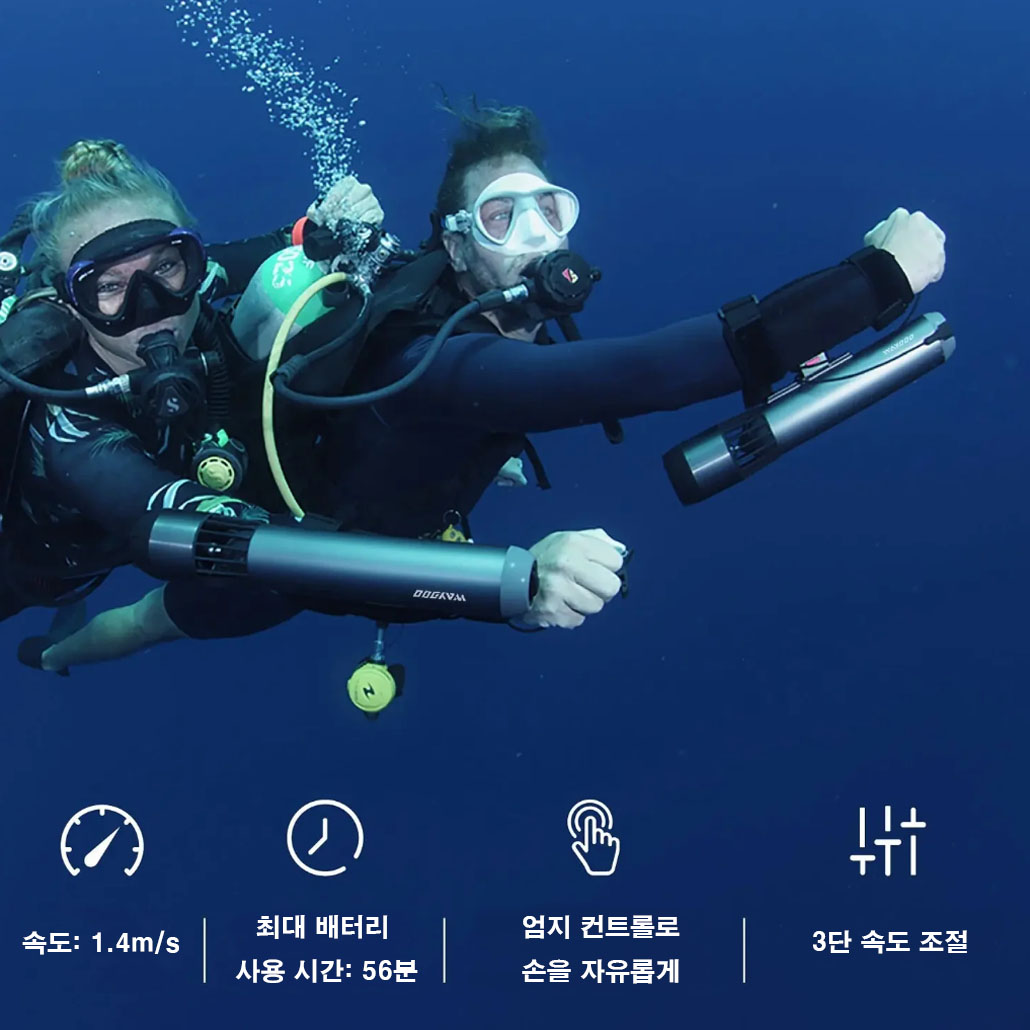 서브나도(Subnado)의 혁신적인 디자인은 단지 손가락만으로도 자유롭고 부드럽게 조작할 수 있어, 공기 교체 같은 작업도 손쉽게 수행할 수 있습니다. 특별한 교육이 필요 없으며, 약간의 연습만으로도 핑거 링을 이용해 수중 스쿠터를 자유롭게 조종할 수 있습니다. 이제 전보다 훨씬 편하게 수중 생태계를 탐험하세요.